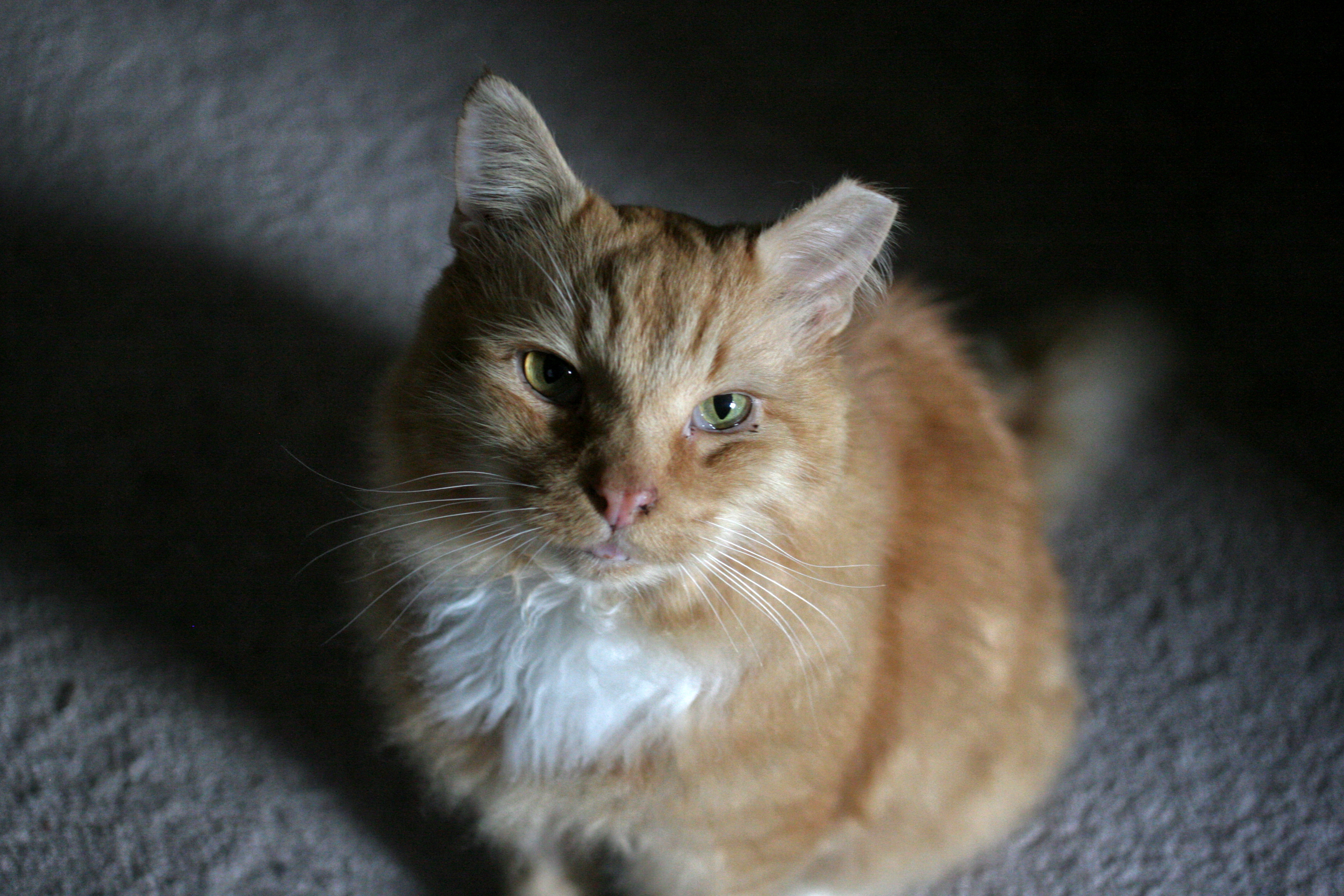 I caught myself doing the same thing with those two dots at the corner of his left eye. They look like dried wet food, or eye boogers, but I suspect they are darker fur or maybe freckles. I’m not entirely convinced in either direction, but seeing as how he’s had the same two dots in the same place since I first saw him back in December, I’m leaning toward it being part of him. In any case, I’m certain he’ll be relieved when I stop trying to scrub them off.